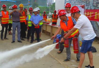 6月16日是“全國(guó)安全生產(chǎn)宣傳咨詢(xún)?nèi)铡?。?dāng)日,龍巖城發(fā)集團(tuán)與市城投公司組織人員分別前往中心城區(qū)華蓮西路一期、火車(chē)站站前高架橋、龍巖大橋高架橋、龍巖大道四期下穿工業(yè)路通道等四個(gè)項(xiàng)目工地,開(kāi)展安全生產(chǎn)宣傳活動(dòng)。圖為工作人員現(xiàn)場(chǎng)指導(dǎo)工人使用滅火器。