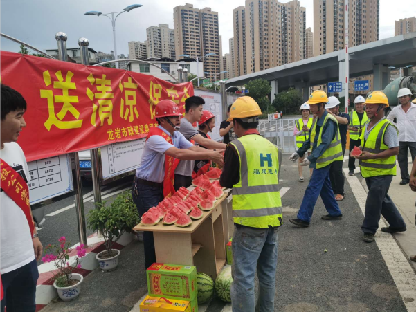 “弟兄們,來吃西瓜、喝涼茶”7月3日大中午,龍巖市政集團(tuán)組織的黨員、志愿者們?yōu)槲玳g在項(xiàng)目現(xiàn)場暫時(shí)休息的一線工人們獻(xiàn)上一塊塊甘甜可口西瓜。這是該公司針對(duì)近來天氣悶熱特意為一線職工開展的“走項(xiàng)目、送清涼、保安全”活動(dòng)。班子成員兵分幾路分別帶隊(duì)前往龍巖大橋、浮東路、羅橋節(jié)點(diǎn)和龍巖大道二期等重點(diǎn)項(xiàng)目,為現(xiàn)場一線的工人們發(fā)放了西瓜、王老吉和菊花茶等防暑降溫食品,對(duì)廣大在一線的員工克服天氣影響,堅(jiān)守崗位認(rèn)真工作表示感謝!