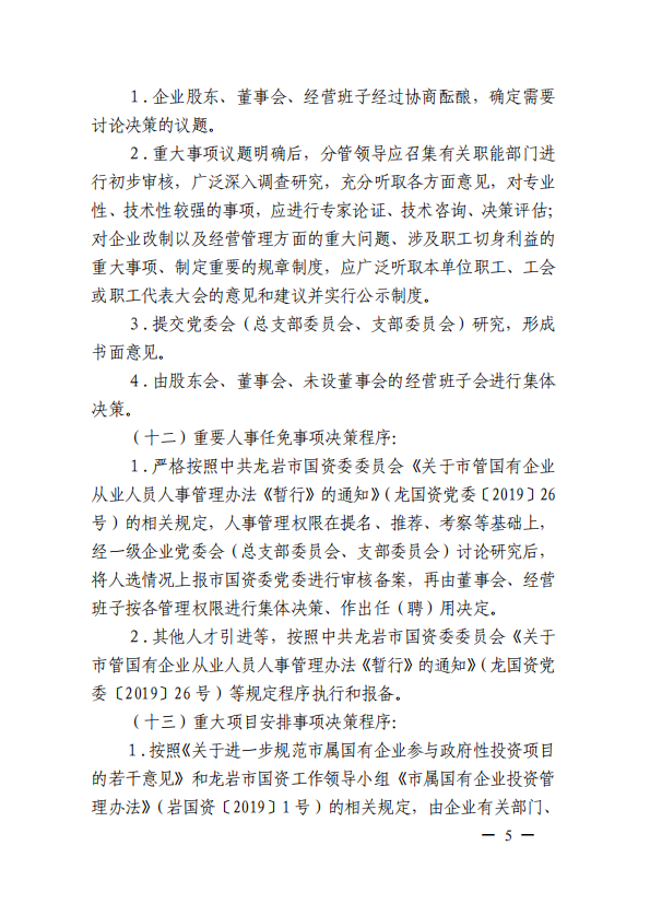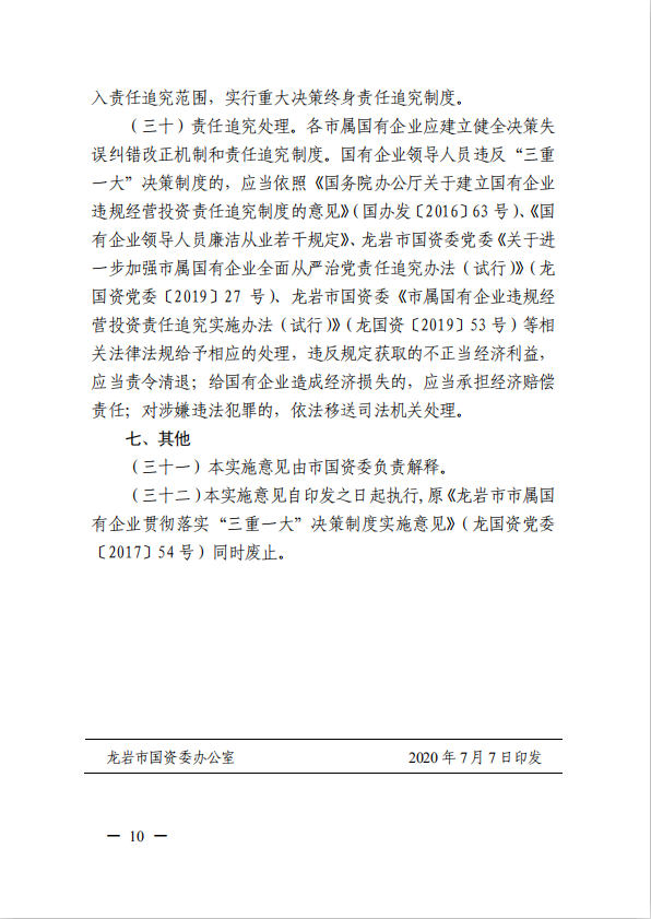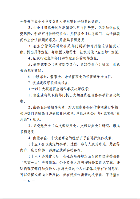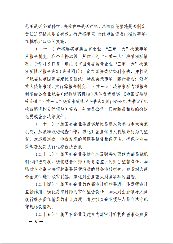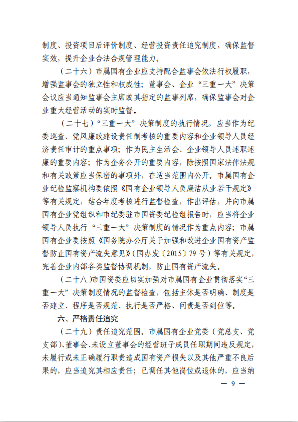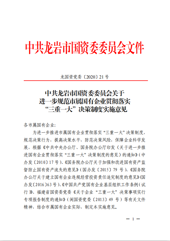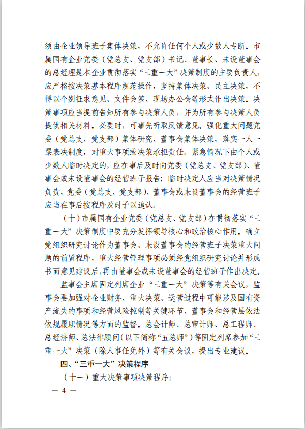 關(guān)于進(jìn)一步規(guī)范市屬國(guó)有企業(yè)貫徹落實(shí)“三重一大”決策制度實(shí)施意見(國(guó)資黨委[2020]21號(hào))